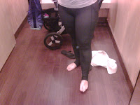 EEEK! Well here is your unflattering Polocross picture. First of all these pants come in sizes 2-8 in these parts so that tells you right there that these pants are made for long, lean legs. I think even if you have fuller legs or large butt and thighs you can wear these but you must, must have long legs. I was able to fit in to the 8 quite comfortably and it didn’t feel like the fabric was stretched at all so if you are a 10 don’t let that stop you from trying on the 8. These pants really exaggerated my leg proportions with the slim fit tapering. It’s too bad because I actually liked them and would wear them if they didn’t skew me so bad. As you can tell, I have checked my vanity and ego at the door and am fully prepared to accept ridicule but I wanted you to see how these fit on someone that is not slender in the leg department and quite short. It makes my thighs look big but because of the tapered legs it makes my calves look small and very short. There was a lot of material bunched up at my ankles too. Love the pants, hate them on me. If they were just Denim Wunder Unders with the same pockets on the sides and none of the line details or two toned luon they would have been perfect for me, but then again they would lose that polocross look completely. I tried on the demim ones and they were really soft and stretchy so these made me want to get a pair of Wunder Grooves in denim which I have never even tried on if you can believe. Have you been to the Gap lateley? they have these new jeggings (legging/jeans) that are a material much like luon denim but very, very cheap looking. When I walked past the display before I thought for sure they were jeans material but when I went in to have a closer look I realized that they were actually stretchy legging material made to look like denim. So there you go, your Wunder Unders should get lots of use this fall because the leggings look is still in.