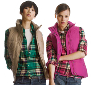 Recently I’ve been reading about Joe Fresh from Superstore, a Canadian grocery store part of the Loblaws chain. For those of you that didn’t know, Loblaws owns Holt Review (very ritzy Canadian department store). Joe Fresh, the store brand of clothing has been taking inspiration from Lululemom in many of it’s designs and I’ve even heard about a very similar jacket to the Everyday Yoga jacket being sold for the $59 range but unfortunately didn’t find it to try on. Probably sold out. I did find these down filled vests pictured bellow for $29 and ended up grabbing a black one (fuchia piping on the inside). they had many color options including a Senorita Pink like fuchsia and a Lolo like purple. The fit is very feminine and a tidge long and cinched at the waist, and actually the vest is quite soft and silky. $29!!! I also got the leggings pictured bellow for $14 which are a cotton lycra blend and fit just like Wunder Unders. Not organic but that probably doesn’t make a difference to the feel of the fabric. I’m really quite happy with my vest purchase as it will tide me over till I find someone willing to sell me a Huff’N Puff Vest in Ivory size 8/10.