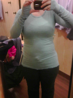 So this is the very lovely Run: Dash LS in Lavender (or was it Lilac..). This is the Size 10 which felt large in the chest and upper body/arms but because it’s a form fitting running luon I was in no mood to see what the 8 did to my belly. See pictures bellow for why. When/If I get this I’ll probably go for the size 8 but motivate myself to tighten things up a bit. I LOVED this top and loved the ruffles. It’s basically a really great warm LS shirt you can wear out and about, under a vest or jacket and it just doesn’t look like an athletic top save for the little reflective detailing at the outer wrist which is quite subtle. I would love to get this top in a different color though which is why in the end I left without it. I do like the Lilac but I have an Inspire Pullover in Lilac and I need something a little bit different. They had Black and Teal as well but those weren’t tempting me today.