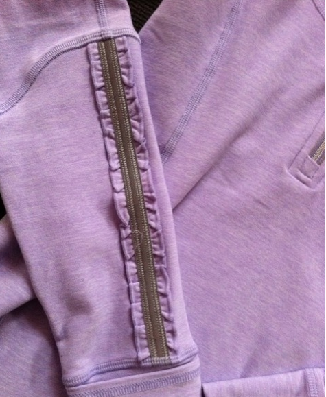 The Run: Dash Pullover has hit ebay sooner then in some stores or Lululemon FB albums so we don’t yet get to see a modelled picture which is disappointing because I’ve really been wanting to see how that scoop seam detail looks on over different busts. My guess is that it will be way more flattering on larger chested (gifted) ladies as apposed to smaller chested women. So far, from what I see in these pictures I’m liking my Inspire pullover better for the ruched feminine neck line and the hip contrast detail which is ribbed luon and helps with the fit around wider hips. Although I do like the pretty ruffle on the sleeve and the placement of the reflective strip for the sake of running, I probably wouldn’t like it for street use as those two elements are quite obvious. I’m tempted a little bit by the Static Lilac as it is so soft and amazing in the Run Inspire that I’ve been greedily considering scoping up anything and everything that may come out in that exact fabric/color. I’m like a greedy cheshire cat these days with running pullovers.