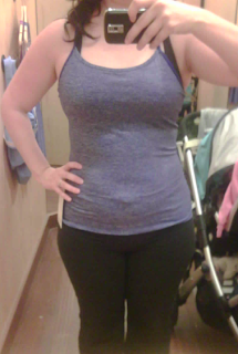 The Stand Strong Tank (size 8). I like this tank except for the fact that it’s short and not as a-line as other tanks. I like my tanks to be nice and long and this one felt much shorter then I like. It’s quite a comfortable with supportive straps and simple yet flattering design. I think the back seam detailing may bug you a bit if you’re on your back doing mat work but it’s not irritating at all just moving around upright. This one is Haze but they also had Black, Wish and Very Violet.