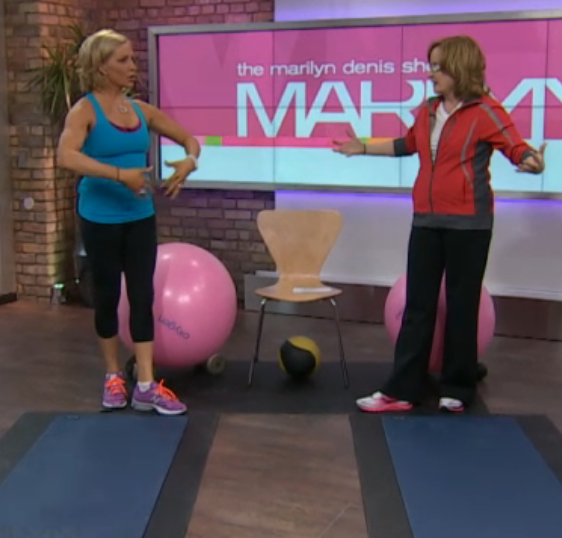 This post is probably exclusively for Canadians. I used to be a big fan of Cityline when Marilyn Denis was on and when she left the show I stopped watching. Sorry Tracy! I’m so happy to see her back on TV with her very own show called The Marilyn Denis Show. Today she had Toska Reno a fitness model, columnist and author as a guest and she was wearing head to toe Lululemon. She was wearing the Run Dash Pullover in Persimmon, Cool Racerback in Snorkel Blue and a 3rd layer underneath that may have been a Flow Y in Very Violet and run crops that I can’t quite recognize.