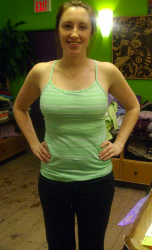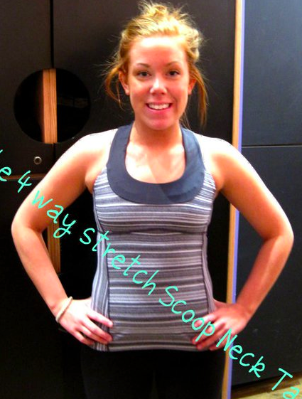 New! Scoop Neck Tank, Hot Class Bra in Ikat Print and a Close Up of Shale Stripe