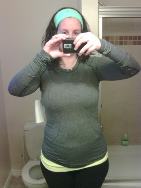 Today was my first opportunity to wear my new Run Swiftly Tech LS on a run. It was about 4* today but super sunny so despite the chill in the air my beloved Hustle Jacket was just too warm to wear today. I wore my Swiflty Tech without a Cool Racerback underneath and it took me about 5 minutes to warm up enough to no longer feel chilled and I was happy with my wardrobe choice for a shortish 3 mile run. I’m really happy with this swiftly. I’ve had the long sleeve before from the made in Israel batch and there are definitely differences between the two. Here is my initial Fit Review of this Black Swiftly Tee.