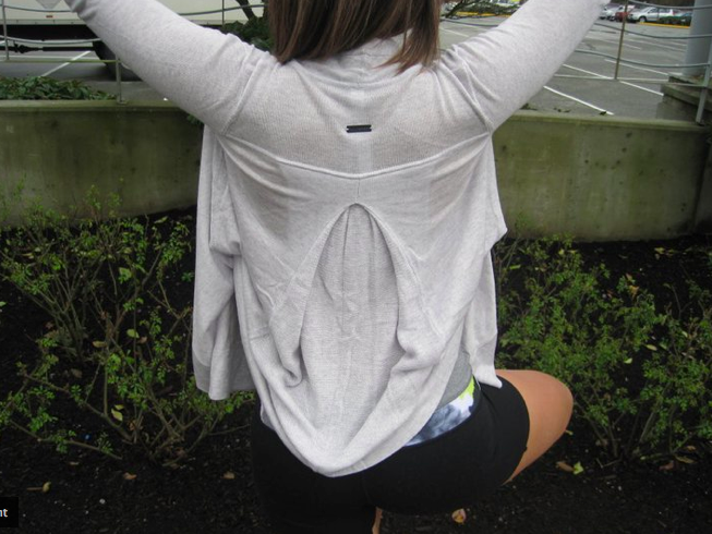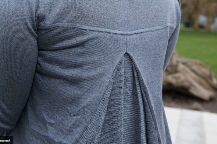 Shortened version front and back. I believe this is the Heathered White version but it’s hard to distinguish the two lightest colors in person so it’s even harder in pictures. The other one is called Heathered Clarity Grey. One was a very soft pale grey almost silvery white and the other was an off white champaign with pink undertones. Have you ever looked at all the white paint swatches from one brand of paint? Hence why I chose Heathered Blurred grey. Who can choose between two very similar off white colors? I like the Heathered Blurred Grey a lot though, its a warmer toned grey that doesn’t seem to wash me out and I like it’s versatility in my closet.