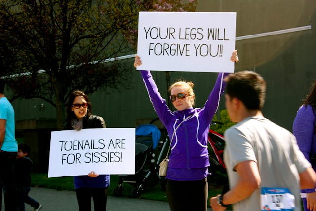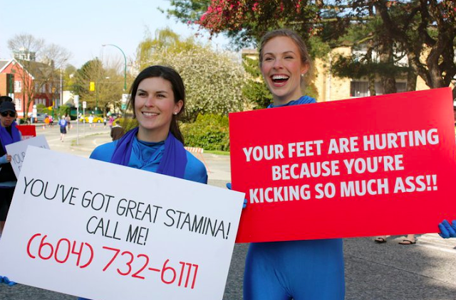 Inspirational signs for the Marathoners courtesy of Lulu at Burrard and Cornwall.