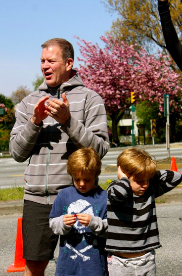 Chip and his sons at Cornwall Avenue by the Burrard Bridge.
