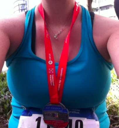 Well I should start off by saying that although I didn’t lose a toenail today at my BMO Vancouver Half Marathon, I did gain what looks like an extra toe but actually it’s just a massive blister on my pinky toe. Other then that my race was pretty darn smooth and enjoyable save for the last mile where I gunned it despite badly, badly wanting to stop and walk it. The weather was gorgeous today and the scenery was magnificent. I definitely want to do this again next year. I’ll do the Half Marathon again but not so sure about the full one for next year. I looked at the BMO Vancouver Marathon Course today and those runners are badass. That distance is just sick. But I wont say never because this time last year I thought a 10km race was ambitious for me and here I am with Half Marathon Medal hanging around my neck.