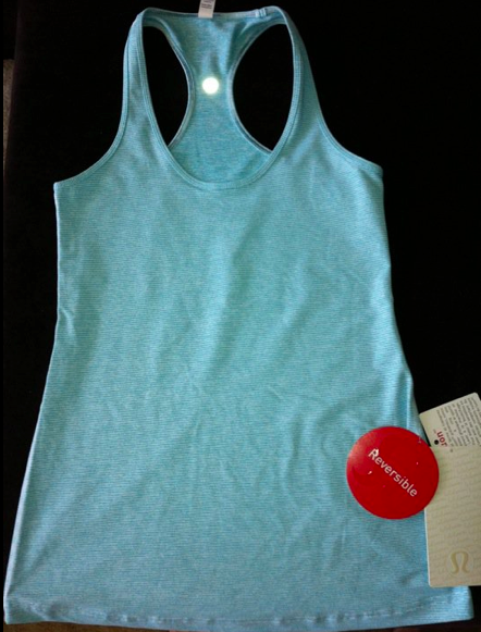 I’m so excited about this new Surge Wee Stripe Cool Racerback Tank (now in some US stores) since my top favourite CRB’s are my Power Purple Wee Stripe and my Coal Strata Stripe. Most of the striped CRB’s seem to have a soft cottony feel due to the lack of polyester and possibly the heathering effect. I really hope this tank is the same softness as the other ones I have because I love the color. This one is also reversible so that the other side has the logo and the contrast stitching. I’m glad there hasn’t been a price increase for the extra logo placement because I wear most of my CRB’s with contrast stitching inside out and right side in and am not bothered by the lack of a logo on the reverse side.