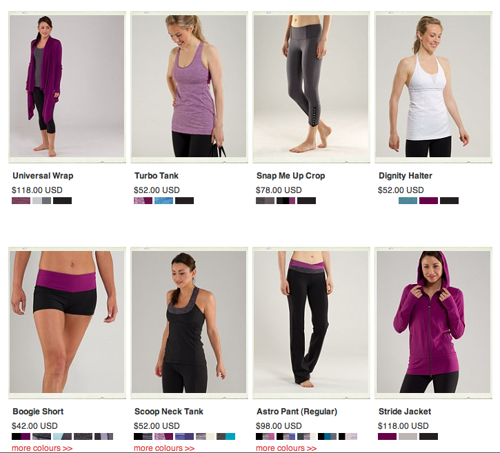 We’ve seen this color on an item before as a secondary detail color (can’t remember what) but the color is so pretty. I’d love to see this in a Sing Floss Travel Jacket or a Cool Racerback Tank in Pearl Luxtreme.
