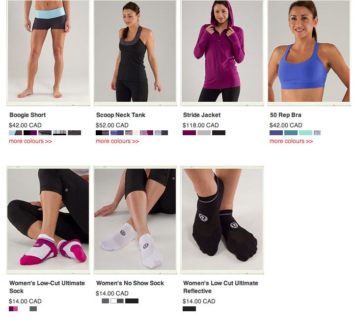 Well I’d say this was a pretty fantastic upload, no? I ended up ordering the Run: Weightless Singlet in Citron and I think I’ll pick up the Pearl Luxtreme CRB next time I’m in the store or perhaps wait for another color run in it. I did really like the Heathered Pigeon on me and I loved the feel of the CRB but I think I want something darker. I love my CRB’s but I’m not much a collector of them as I just have 4 at the moment.
