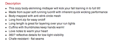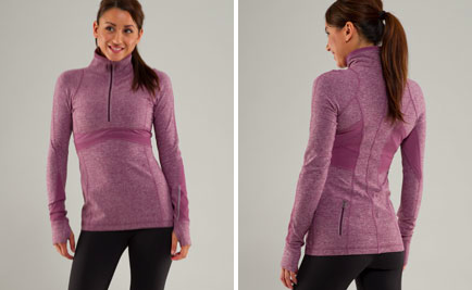 Ooooh a very exciting product alert just popped up on Lulu This Just In with some beautiful running items. I’ve been dying for some running luon items so I’m glad were seeing a LS at the same time as the pullover so we can better decide what to get. Last year we got lots of pullovers first and then later in December we started to see the Long Sleeves. I think this year I want to get a Long Sleeve first since I don’t have one of those yet and then get a pullover at a later date. I would love to see something in Heathered Raspberry but I may get the Clear Sky LS pictured below.
