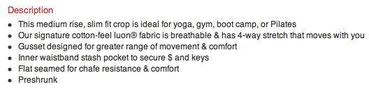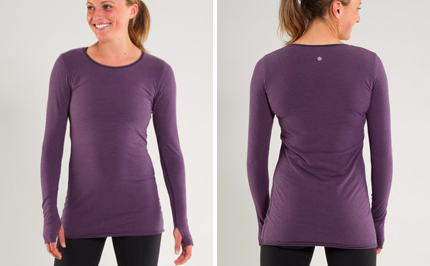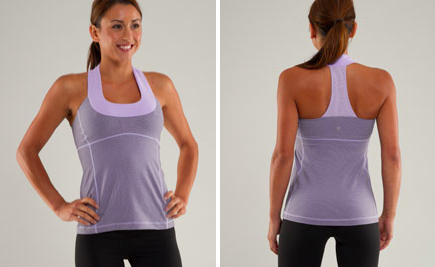 I stopped in at lulu today and my trusted educator confirmed the Gratitude Wrap rumours and told me they’d likely be in stores this month, and that there are about 3 colors expected. She also let me know that there are fleece pullovers on the horizon, new brighty colored vinyasa scarves. Persian Purple is a new purple coming in the October clothing palette and it’s very similar to Power Purple in its vibrancy (its not PP though) and we will be seeing lots of plum. She hadn’t heard anything about a Black Swan themed Tutu (stranger things have happened though). She also let me know that the mens line has a brand new design team with an eye to more masculine colors and designs so that is an exciting thing to keep an eye out for for early Christmas shopping. Hopefully this is true because I’d love to get my husband a few pieces for Christmas.