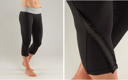 I stopped in at lulu today and my trusted educator confirmed the Gratitude Wrap rumours and told me they’d likely be in stores this month, and that there are about 3 colors expected. She also let me know that there are fleece pullovers on the horizon, new brighty colored vinyasa scarves. Persian Purple is a new purple coming in the October clothing palette and it’s very similar to Power Purple in its vibrancy (its not PP though) and we will be seeing lots of plum. She hadn’t heard anything about a Black Swan themed Tutu (stranger things have happened though).  She also let me know that the mens line has a brand new design team with an eye to more masculine colors and designs so that is an exciting thing to keep an eye out for for early Christmas shopping. Hopefully this is true because I’d love to get my husband a few pieces for Christmas.