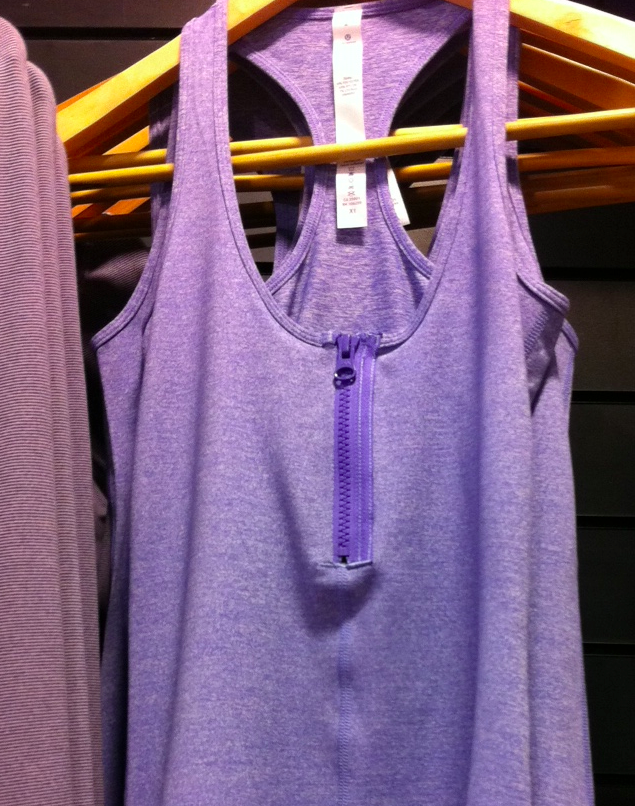 A SE Cool Racerback Tank in Static Persian Purple with a zipper at the neck (..intrigued) and perhaps a micro stripe CRB on the left.