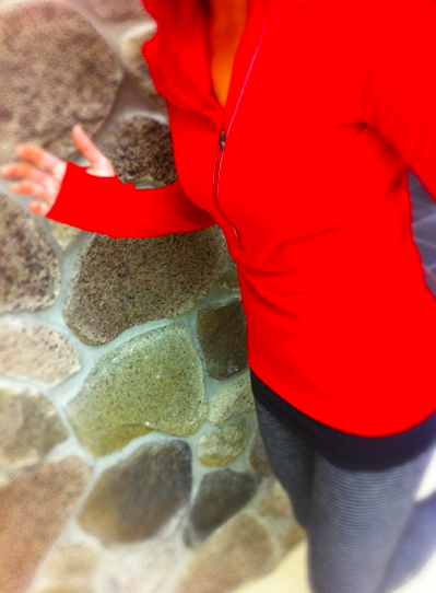 **Thanks to Aimee who saw this today at her Portland, Oregon store we know that this is likely a brushed Luxtreme Pullover, priced at $118 and has ruching at the shoulders and an asymmetrical zip at the neck (from centre of left shoulder to neck).** I’m super excited to get this if it’s luxtreme because colors are so much more saturated in that fabric and it’s durable and stays looking new for longer. When the inside is brushed it feels very similar to running luon so it still has that cozy factor.