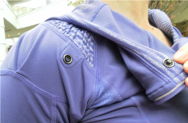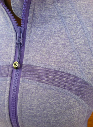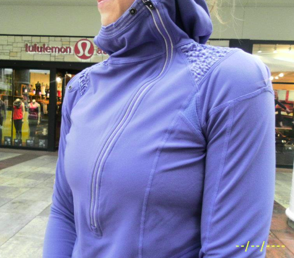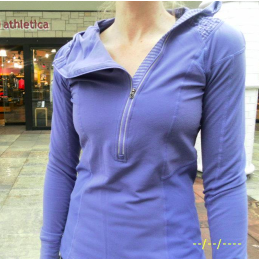 The Off The Mat Jacket. My store had 4 of these left today. I think they got a small shipment of them since the price point is quite high. I tried mine on again today over a Cabin LS and the fit is really comfortable still so I’ll be keeping mine. I’ve decided that the only ok way of wearing this jacket left unzipped is if you button a few of the neck snaps to keep the asymetrical panels from flapping about. According to the GEC the fleece is the exact same fleece used in the Don’t Hurry Be Happy Pullover and the price increase is due to the extra design features that went into it. I sort of wish Lulu would give more fabric details with the fleece like some of the other high end fleece retailers do. Like, I want to know if the fleece has ‘lofted hollow core fibres’ to provide extra warmth, and I want to know if it’s a Polartec fleece they are using which is the highest quality fleece that Patagonia and The North Face both use or if they are using something different but of equal quality. At this price point, it’s an investment piece for it’s functionality and not just for it’s design features. None the less, it’s a gorgeous jacket and I can see myself wearing it a lot on dry days as an easy comfortable overlayer. Probably wont layer nicely under a shell jacket with this neckline but it will probably take me right to spring.