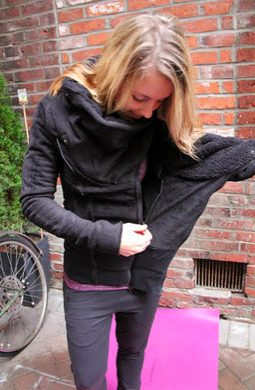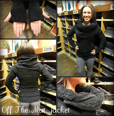 Sorry for inundating those of you not at all interested in the Off The Mat Jacket but there are a lot of you interested in this funny little pricey jacket and waiting for it to get uploaded tomorrow but still unsure if its a love it or hate it item. It’s helpful to see all of these different angled shots of the jacket since it’s got a more complicated construction and a pretty conspicuous profile. I’ll be stopping in at my store (again!) today before school since they are getting product drops all week and I’m hoping to see those Savasana Socks to check on the price so look forward to more none OTM Jacket posts.
