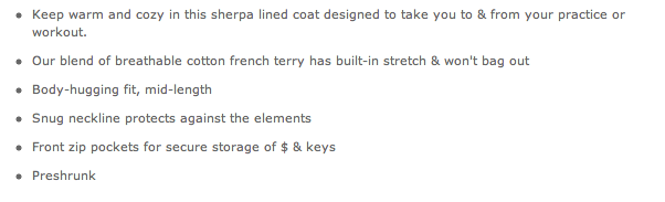 Thanks to the lovely Sharon from one of the Lululemon Facebook Groups for trying on the Cozy Coat. It’s $178 and is lined with sherpa fleece throughout and fitted to the body so you can comfortably wear a base layer like a Cabin LS or Swiftly Tech Tee but not something bulky.