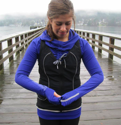 Coquitlam Centre just posted pictures of this new V-Neck Running vest with oodles of reflectivity edged into the ruffles on the back and on the logo on the front. The two things I feel a running vest must have are great pockets and tons of reflectivity. If it’s not highly functional there is just no point in wearing a vest for running in. I’ll be in the store shortly so I’ll check out the details and post them back here.