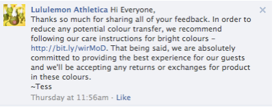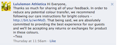 This is getting ridiculous. Indigo is now the 4th color in a row that is having problems with bleeding. Paris Pink, Flash, Pigment Blue have had enough problems that lululemon has provided a warning sticker on all those items and they have also stated on their facebook page that they will return any items in those colors, a carte blanche return on items in those colors! This is a problem. This is not a matter of simply caring for your athletic clothing differently this is lululemon manufacturers using cheap dyes instead of better quality dyes that do not bleed like this.