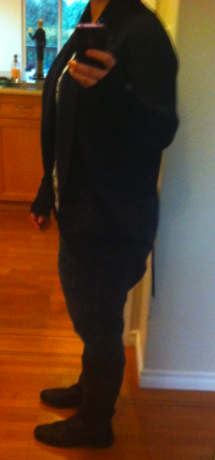 Reverse side is fun and funky but also busy with the really, really wide Dark Indigo Lapel. I’d probably wear it this way out if I also belted it with a real belt. I do like it though so I can see myself wearing it this way sometimes but my preference is the Deep Indigo side out. No pockets on this side.