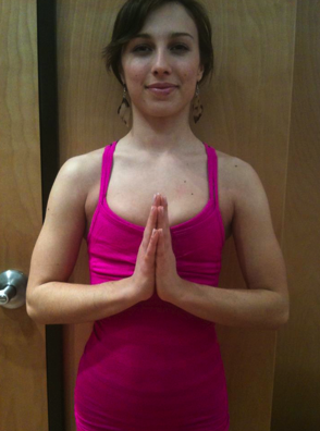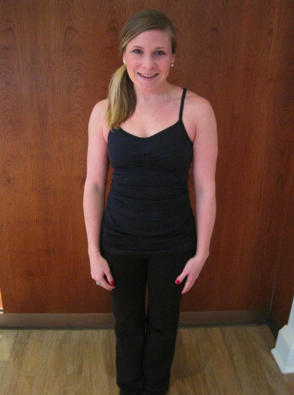 Here you can see how the bust detail fits on a smaller bust. The ruching and band below the bust may be a bit overwhelming.