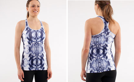 A US showroom has received items in the new Ink Blot White Deep Indigo print and Groove Pants that appear to be solid Deep Indigo with Ink Blot Waist. I’m thinking this is what we will see on Monday, or maybe we have to wait till Thursday February 1st before we see these new items released. I haven’t decided yet if I love this print or if it’s going to be like the Unicorn Tears which I initially really liked and then later really disliked. I think I’d love to have an Energy Bra in this print. It’d look really fantastic layered under a solid bright colored Cool Racerback Tank.