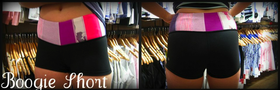 Thanks to Erica for sharing this picture of her new Boogie shorts. I bet you the floral like blotchy print on the left (which I LOVE) is that Multi Green Fancy Love Print we’ve been hearing about. There is also a space dye print that looks different from the Ultraviolet Dazzle Space Print we’ve seen pictures of. THis one looks a lot more white. I think the blue on the left is a heathered indigo, then there is a Lavender Dusk, Ultraviolet and the color on the right looks similar to Passion but maybe it’s a Dazzle..