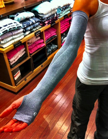 Slim fitting seamless arm warmers with compression fit and silicone grips.