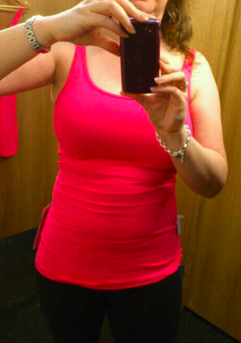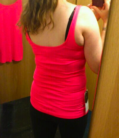 Many thanks to Ms. L all the way in Australia for trying on the new Daily Tank for us. Her store only had the Flash and Black in and not the Concord Grape one I posted earlier today. It’s luon light and perhaps slightly thinner than a CRB but I think thats probably because it’s not heathered. There is a seam running down the centre of the back but she says she couldn’t feel it and it wasn’t a bother at all. She tried on both the size 8 and 10 and was happiest with the fit of the 10, I believe she goes with both sizes in CRB’s just like I do. She feels the fit may be slightly slimmer than the CRB but also slightly longer so the extra length could be why it felt a bit narrower in the torso. The price in Australian dollars is $59 which is the same price as their CRB’s so my guess is that in North America we will see these priced at $42 (I miss $39 CRB’s). They are reversible just like CRB’s. Also worth noting, she is wearing a regular non sports bra underneath this and it is completely covered in the front and only a little bit of straps show in the back. I love that I can wear a regular bra with these!! (Mr. Lulumum is happy when I don’t have a uni boob and wear real bras) Logo is on the bottom left at the hip (also a detail I like, it’s much less obvious). I know for sure I’ll be getting this in Concord Grape once it’s out. I cannot wait. Again, thanks so much to Ms. L for her trip to the store, pictures and fit review. I so appreciate when readers can send in reviews or pictures (even if I suck at responding to email sometimes and saying thank you, my inbox is a total clusterf**ck).