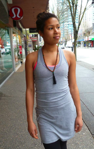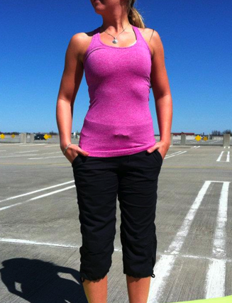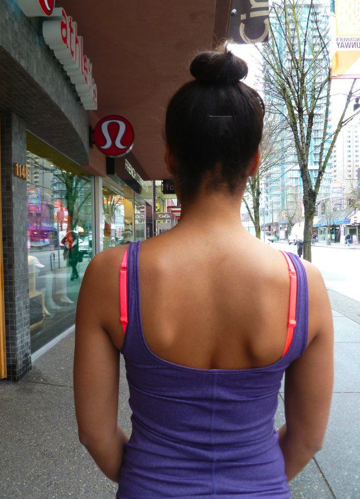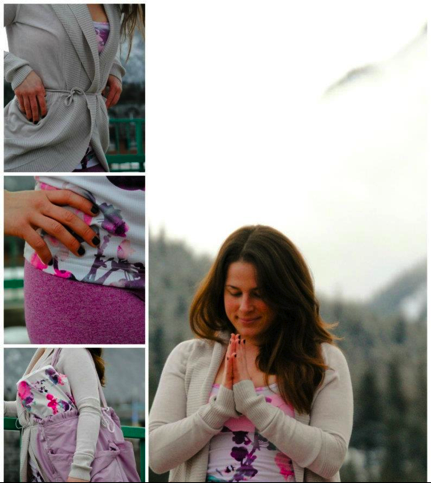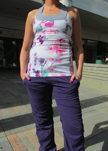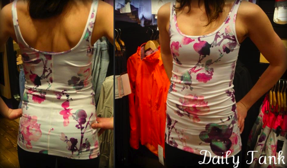 I briefly tried on the Daily Tank today and really liked it a lot. I think if you have narrow shoulders the straps may slid down on you but for me they were quite comfortable and stayed in place. I wore a regular bra underneath it and it was totally concealed which is such a huge bonus, especially for wearing casually. I wish the Concord Grape one came in solid instead of heathered but I still liked the color a lot. I especially loved the Blurred Blossom one underneath my Dune Transition Wrap.