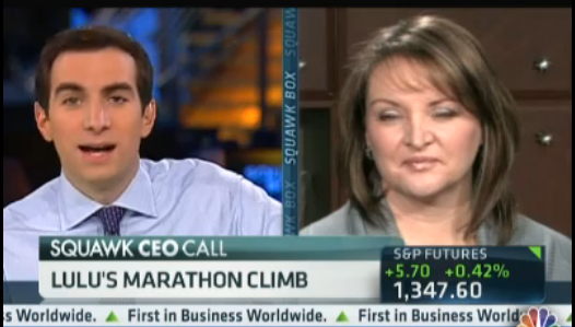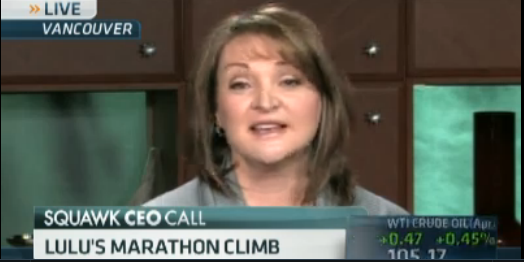 Click here to view video ‘Lululemon CEO on Growth‘ CNBC interview with Christine Day. Looks like Christine Day may have been wearing the Transition Wrap and her Pin Stripe Wunder Unders for this interview.