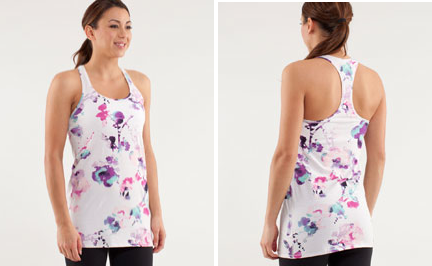 A reader just totally made my day by forwarding her stores product alert email which has the Every Yogi Tank in Blurred Blossom which I’m coveting. I love this print more for casual wear because truthfully I don’t see myself wearing a print like this to Crossfit. Maybe running but definitely not Crossfit. I remember the ink blot print was quite a bit more saturated in the Every Yogi Tank than it was in the Cool Racerback and other luon versions so I think this is going to be super pretty in the Every Yogi Tank.