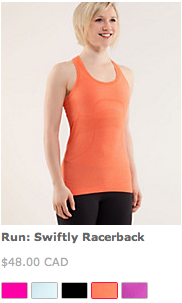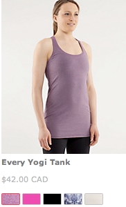 A few items that I’m tempted for are the Run Swiftly Racerback in Dazzle, the Every Yogi Tank in heathered Aquamarine and the Every Yogi LS. Tempted but not enough to pull the trigger on anything tonight. I would really like to get something in Dazzling but nothing seems to be the right item.