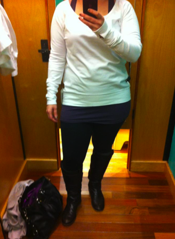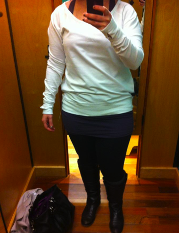 I tried on the Meditation Pullover this afternoon and quite like it. On the hanger I looked at it and thought it was quite plain but once on I really liked the details of how the back is longer than the front, and the neckline on it. Definitely size down in this top as long as you don’t mind snugger fitting arms. The lower sleeve in the wrist and forearm are a bit snug. This is a loopy cotton french terry so it’s quite thin compared with the Rest Day Pullover or other sweaters that have been out in this material, it’s also stretchy and really soft. I’m waiting to see if this comes in Concord Grape or some other exciting color before I full decide but it is nice that you can wear any CRB or Every Yogi Tank underneath it. Check out how long my Every Yogi Tank is underneath. I sized down to an 8 and it still can be pulled down all the way over my badonkadonk.