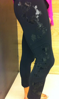 I took a look at these crops today and I don’t really like how the silicone grips look all the way down the leg. It just looked like a globbed on hot glue gun accident in this particular execution of the print. I’ve liked past versions of this silicone design which I think came in a thin linear feather print so it didn’t looked globbed on, it looks more deliberate.
