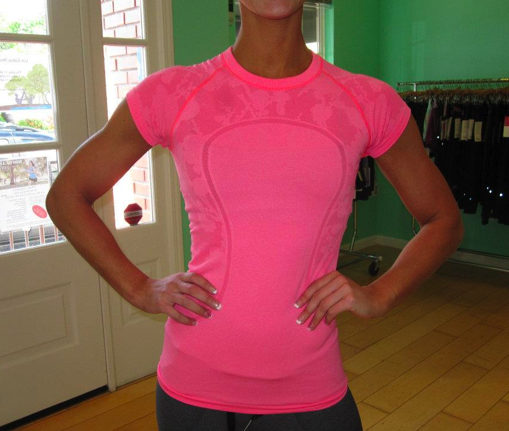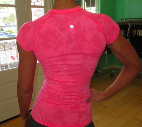 Our favorite model from Los Gatos Show Room is back to model the Special Edition Swiftly Tech SS. Man she has awesome arms!! This swiftly tech is so gorgeous with the jacquard floral print but I wasn’t planning on getting anything in flash. If this comes in a long sleeve or v-neck and also in a different color I will definitely consider it. I like the back over the front on this one since the back is covered in the print, the front just has the print around the logo. I wonder if it will be in all stores or just select stores.