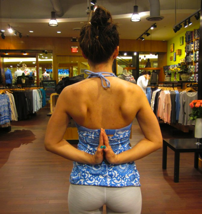 I didn’t realize last week that this years version of the Iconic Wrap is tencil silk jersey and not pima cotton. I’m tempted to try this on because I suspect since it’s thinner it will drape better and be much cooler. Also worn in this shot are new SE Wunder Unders.