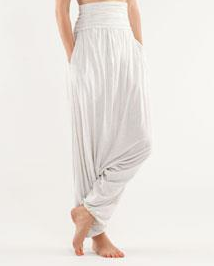 *Update* Ok, I decided I have words after all and am back for a rant. I’m thinking these are made of cotton, probably vitasea or organic cotton based on how it drapes. And that really upsets me. The price of cotton has gone up which I thought was the explanation why we haven’t seen any summer weight hoodies like previous years and why the scuba hoodie production stopped over the summer. No wraps, no hoodies and items that would typically been made out of soft cotton have been replaced with tencil silk jersey. But then they go and release this gross design (sorry if I offend anyone that is in absolute love with this item – surely there must be someone if they keep producing these harems) and they are likely going to be priced at $98-$130, they use copious amounts of fabric and will hit loot shortly. Which means they wasted resources and floor space selling these items and wasteful designs like these inevitably mean prices go up on items that do sell.