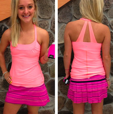 Pow Pink Define Jacket and Pop Orange Scoop Me Up Tank, Pow Pink Speed Skirt
