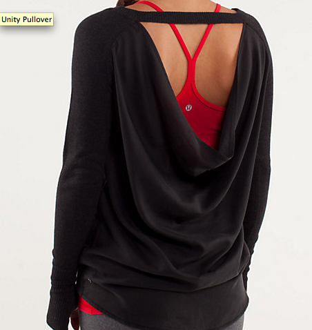 Now this sweater is cute! I like the drapey, open back. Comes in White/Heathered White, Black/Heathered Black and Fossil/Heathered Fossil.