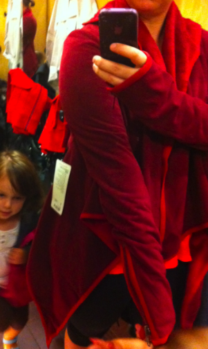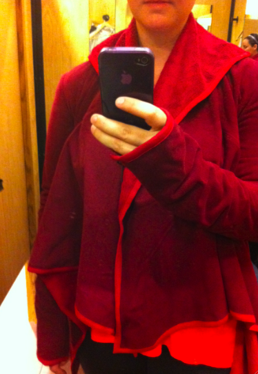 This wrap thing was AWFUL on me. This was the size 10 and it fit super, super snug in my arms and was cutting off the circulation in my brachial artery. The material was really bulky and just didn’t drape nicely. There was also this stiff zipper at each wrist. I know a lot of you were intrigued by this based on the online picture but it’s really not a well designed wrap. Sure the fleece was really soft and nice but it’s just not a good use of it this kind of material.