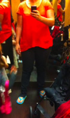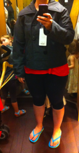 Lots of goodies were in store today, some items that weren’t uploaded too. I found this Ride On Anorak as well as the Special Edition (zig zag print) Power Purple Swiftly LS. Lots of items that were uploaded I just didn’t have time to try on but would still like to. I did see the milky way Power Y and it is in fact high polyester. The print didn’t grab me in person. I also saw the Scoop Me Ups in Split Pea Tonka Stripe and Pigment Blue and the Run: Nothin’ But Run in Power Purple was so beautiful.
