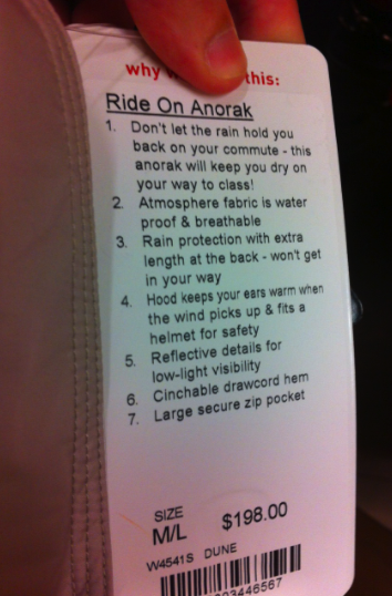 I tried on the Pedal Power Pant on a whim and I really liked them a lot. I think on slimmer figures the darting at the front panel/hip area bags out too much, but on me with my wider hips and higher rise it laid flat and provided a really comfortable fit. They were tight coming up over my hips but once in place they fit really well and the waist hugged me without causing muffin top. TTS, size 10 and I could have sized up to the 12 for a baggier fit but I like the skinny jean look in these and they were quite comfortable.  I liked that it’s a slim leg that doesn’t bag out at the waist which is an issue with skinny jeans on pear shapes sometimes. They are very skinny jean like with a woven material that feels like a soft stretchy denim.  If they ever reach mark down I will strongly consider getting them but for now I’m passing a) because I have to and b) because if I want the ‘jeans’ look I have a lot of jeans that sort of fit like this. If I want sporty casual pants I have DSP’s. Really, they just don’t fit my lifestyle at the moment and it’d be a bit poserish for me to get them. Although again, if I commuted to work I would definitely get these. And I’m really wishing I had a job now that I could cycle to. And I’d have a basket on my bike to bring baguettes and a bottle of wine home after work. Or a Vespa. I’d love to wear this while riding a Vespa.