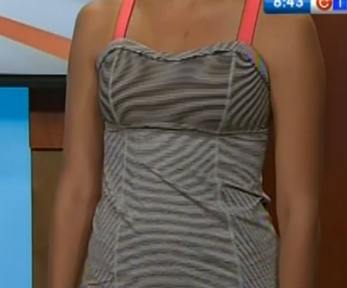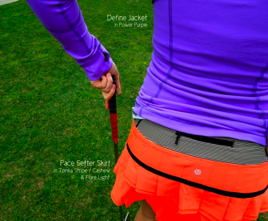 A couple of sneak peeks popped up tonight. The first one is of the Run: Catch Me Tank in Cashew Tonka Stripe/Flare which I saw on a CTV Edmonton News Segment (here). The second one is of the Pacesetter Skirt currently in Australian stores in Flare/Cashew Tonka Stripe. There is a rumor floating around that there will be a product drop in stores tomorrow due to the Monday Labour Day holiday. I’m not sure though, it could be major markdowns due to seasonal changeover and the huge amount of inventory stores currently have (something to do with Q2 looming close?). I’d be surprised though if stores are getting any items we haven’t already seen in the upload or on the sneak peeks I’ve posted here (rain jacket, pigment tonka striped and current Run: Chase Me Tanks, bonded Angel Blue and Split Pea CRB’s etc, Down Town Puffy Jacket, the Bordeaux Drama Studio Crops my store never got). For the past year items have debuted (doesn’t that word sound funny?) online first before stores with the exception of two or three US stores that get items on the Friday. Nothing for me tomorrow unless there is a bordeaux drama CRB (preferably tonka striped) or a tonka striped pigment blue CRB. I’m otherwise still enjoying my most favorite purchase in a long time – Angel Blue Define Jacket.