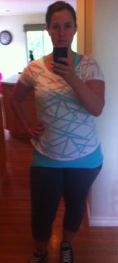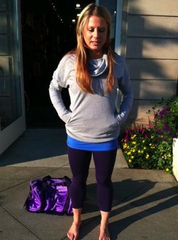 This is my sicky OOTD. Still sick, still feeling like poop and really missing crossfit. My Tea Lounge Crops with Angel Blue CRB and my Joe Fresh Burn Out Tee (love it!! $12!!!!!). I feel I look pretty put together today for someone with a serious head and chest cold when I actually feel like going grocery shopping in my flannel pajama bottoms and gross slippers.