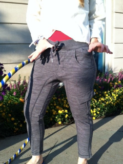 Tried these Carry and Go Crops on today and liked them in the size down with the hems folded up. The waist can either sit really high for a super high rise, or you can wear it as intended with saggy crotch. I was able to pass on these though since I like my Tea Lounge Crops better.
