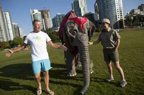 At this cheer station there was a blow up mountie, beaver, bear and eagle. Just after this was the group of Tai Chi practitioners.