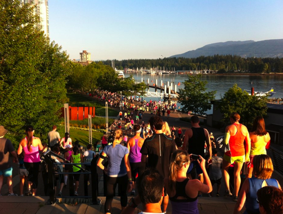 I have to start by saying that Lululemon and every single volunteer, entertainer, traffic director, water bottle pickeruper etc did a phenomenal job yesterday making it an event to remember. It was so well orchestrated and organized that there were very few hiccups. The energy of the even yesterday simply cannot be replicated by any other race and it was so exciting to see all of the lululemon style surprises around every corner. They hired tons of entertainers for the race at almost every 200-400 meters. There were strange clown cyclists, choirs, a group of elderly tai chi practitioners, paddle boarders,  dragon boaters, drag queens, mermaids, goofy lululemon staff doing their skits, Specialized Lululemon Clad Cyclists. It was really an interactive love letter to Vancouver and it was neat to see the variety of different entertainers. Lululemon thought of absolutely everything on this course from entertaining your cheer station with bouncy castles, food and activities for the little ones, to cut up fruit and water and gels at every single station, coconut water at the end of the race. The course was very well planned taking advantage of the view at every single point and providing a lot of lovely shade. The bridge and hills where a challenge but I’m really glad they were part of the course. The BMO race I did avoided the bridge and as a result there was a bit of dipsy doodling within the city streets so there wasn’t a view the entire race like there was for the Sea Wheeze.  It was an amazing event and I’m so glad that I got to be a part of it.